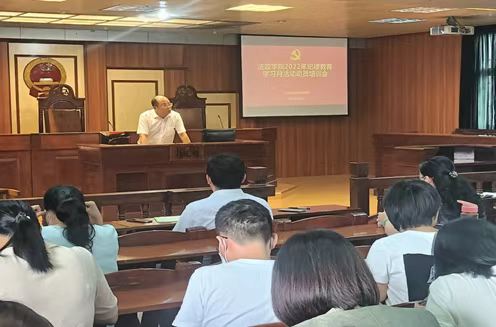 在模拟法庭召开纪律教育学习月活动动员暨纪律教育专题辅导报告会。学院全体教职工参加了会议。会议由学院党委书记陈伟斌主持。