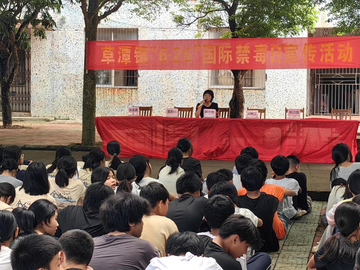 6月26日国际禁毒日。为进一步加强未成年人毒品预防教育,提升学生们的禁毒意识和心理健康水平,2024年6月25日,遂溪县草潭镇镇政府邀请广东海洋大学社团学姐 庞小菊副教授到遂溪县草潭镇下六中学七年级、八年级学生开展“珍爱生命、远离毒品”的禁毒普法宣传讲座。