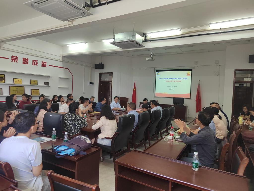 邀请学校党委理论宣讲团第四届成员,马克思主义学院李新慧副教授在文科楼1号楼405会议室举行学习贯彻党的二十届三中全会精神宣讲报告会。报告会由学院党委书记林忠新主持,全院60余名教职工参加。