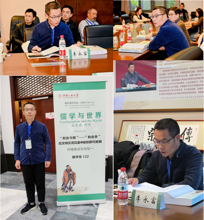 12月1日下午,李永富副教授以《论朱熹家庭秩序的和合意蕴》为题,从历史文化语境、家庭内部的多元差分、家庭秩序的融突和合三个层面,说明了自己的研究成果,并与台湾东海大学蔡家和教授和北京体育大学陈石军博士等学者进行了深入探讨。随后,李永富副教授和上海社科院张志宏研究院共同主持了第五场“和合今释——和合学在文明交流互鉴中的创新与发展”的发言和研讨。