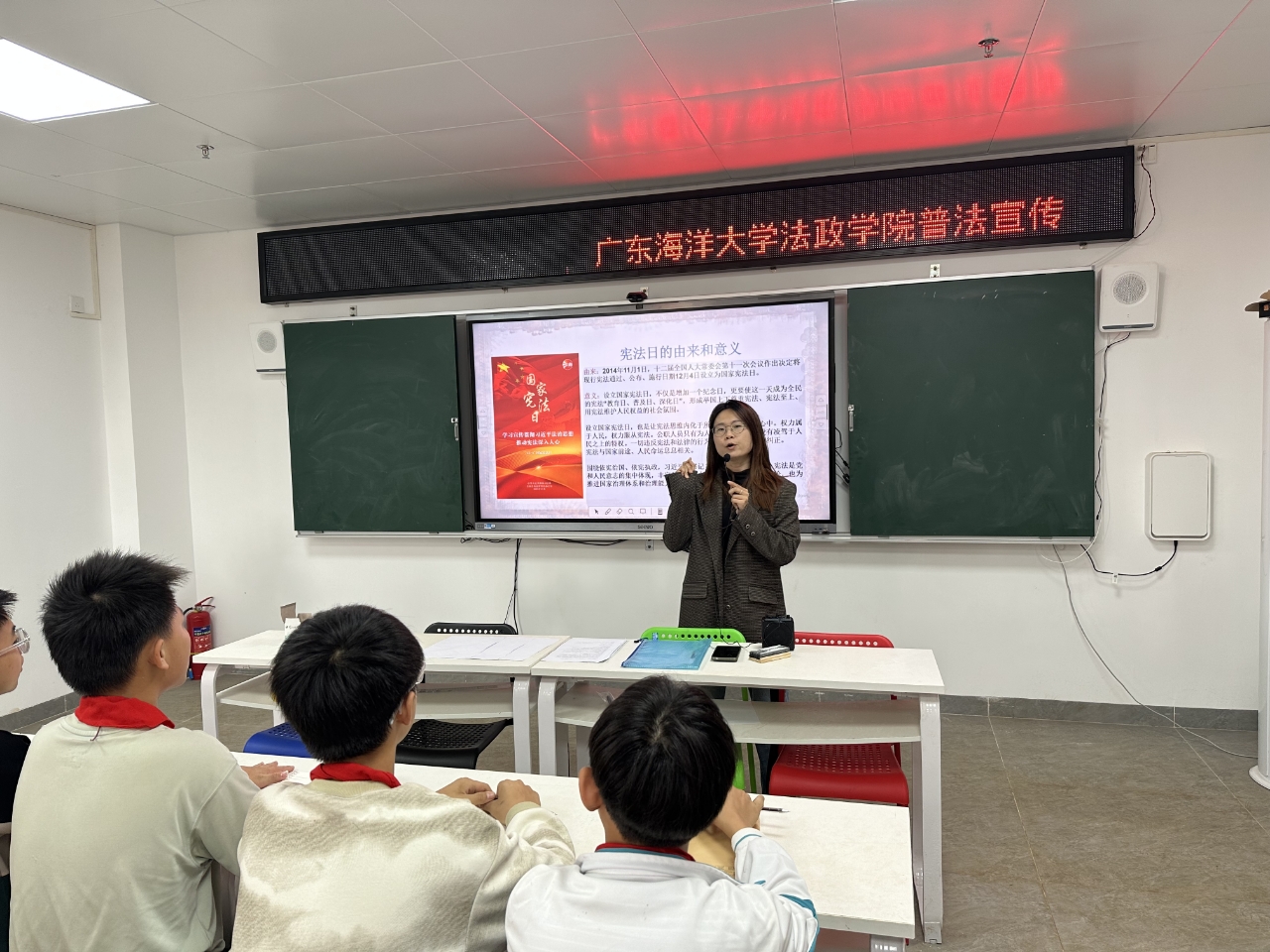 12月4日国家宪法日当天,学院组织部分师生前往徐闻县开展“法润平安 护航‘双百’”专题活动。学院党委书记林忠新、党委副书记黄善、副院长刘澍教授、实践教学中心主任周立波、办公室主任宁乐添、李谦博士、政治辅导员梁笑莹及部分法学专业本科生共同参与。学院先后与徐闻县曲界镇田洋村委会、城北乡石岭小学签订《广东海洋大学社团学姐