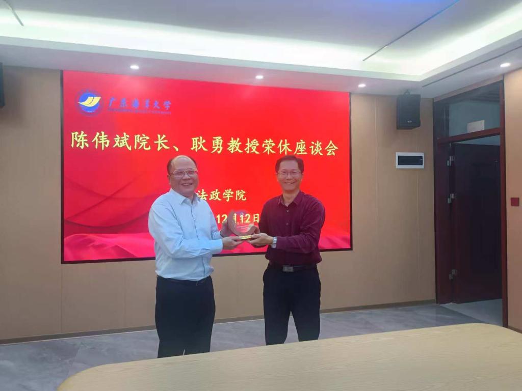 在博文楼A座612室举行陈伟斌院长、耿勇教授荣休座谈会。学院班子成员、各系(中心)主任及教师代表齐聚一堂,共忆耕耘岁月,共话教育初心。座谈会由学院党委林忠新书记主持。开场伊始,林忠新书记详细介绍了本次座谈会的背景与目的。他表示,陈伟斌院长、耿勇教授将毕生心血倾注于社团学姐