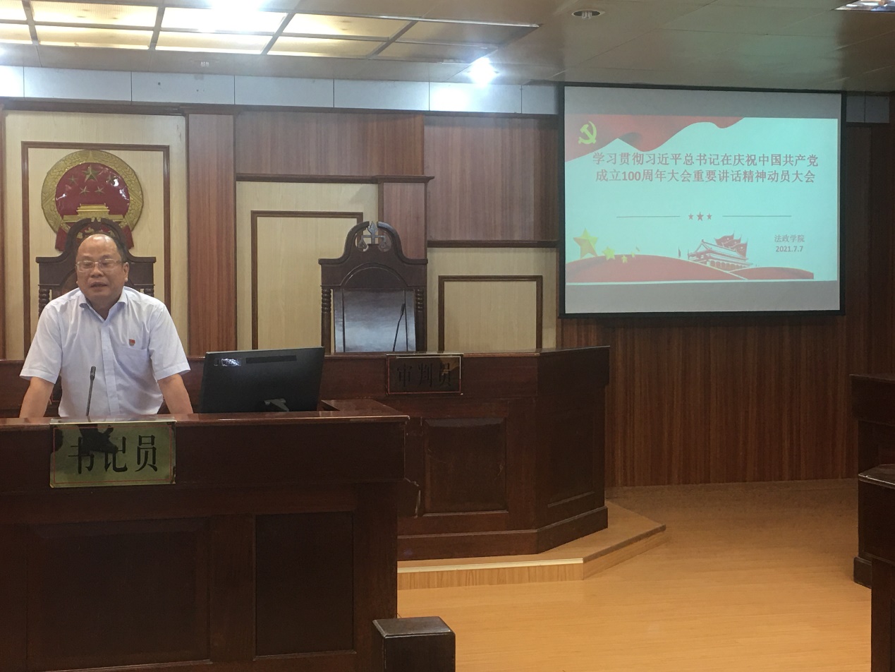 党委在湖光校区教学主楼模拟法庭召开了学习贯彻习近平总书记在庆祝中国共产党成立100周年大会上重要讲话精神教师、干部动员大会。会议由张显伟院长主持、陈伟斌书记作动员讲话,社团学姐